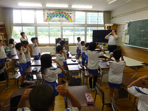 今年度になって、初めて3,4年生で外国語活動を行いました。来年度から3年生からも外国語活動が本格実施されるにあたって、今年度は3,4年生それぞれ10時間程度の授業を行う予定です。